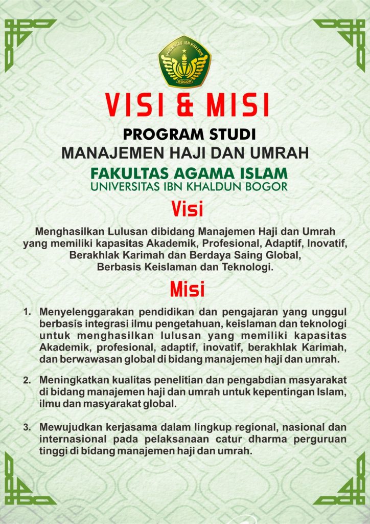 Program studi Manajemen Haji dan Umrah bertujuan untuk mempersiapkan calon-calon tenaga profesional dengan keahlian khusus dalam mengelola dan memanajemeni perjalanan ibadah haji dan umrah. Ini meliputi studi tentang manajerial, administratif, keuangan, dan logistik yang berkaitan dengan penyelenggaraan perjalanan haji dan umrah secara efektif dan efisien. Program ini juga dapat mencakup pemahaman tentang aspek-aspek budaya, agama, dan sosial yang relevan untuk memberikan pelayanan yang baik kepada jamaah haji dan umrah.