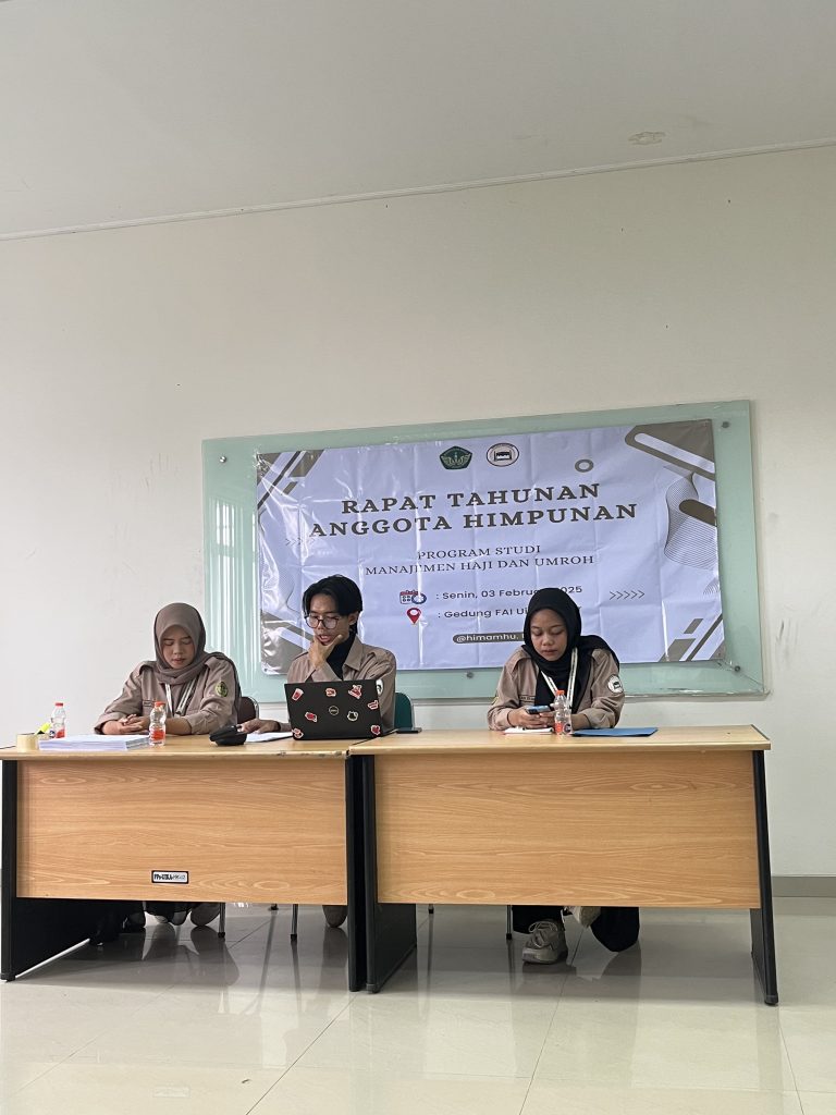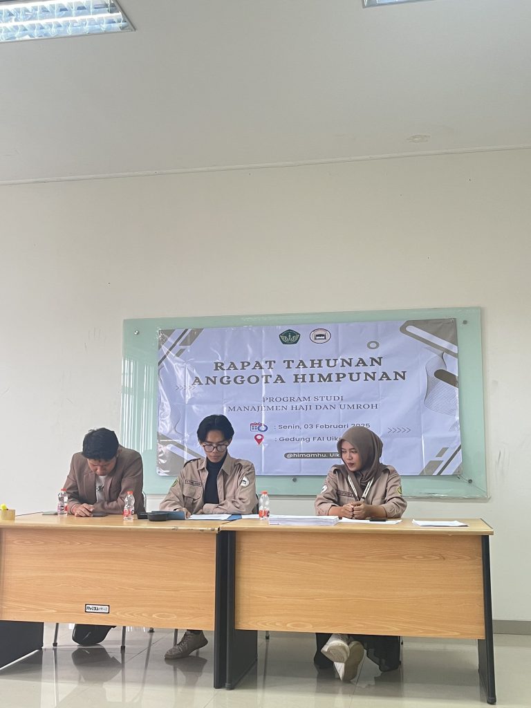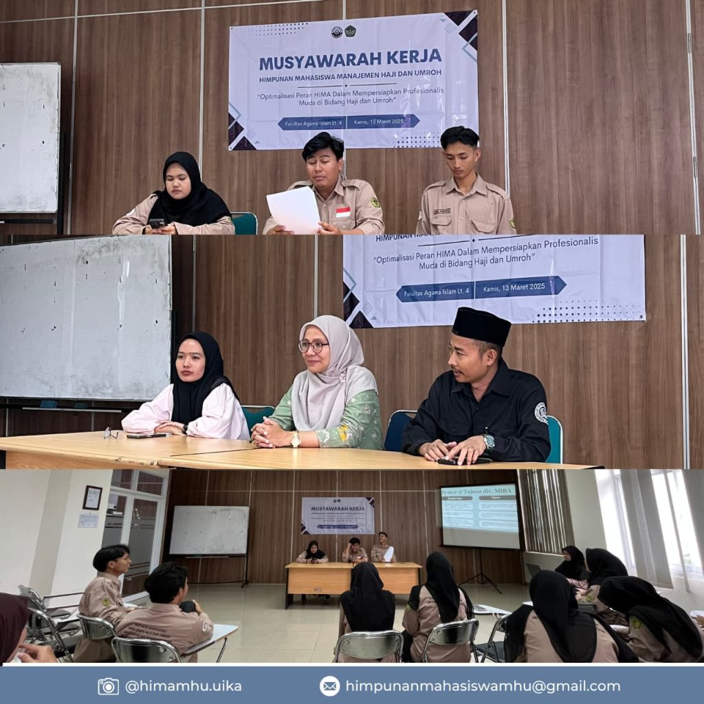Bogor – Himpunan Mahasiswa Program Studi (HIMA) Manajemen Haji dan Umrah Fakultas Agama Islam (FAI) Universitas Ibn Khaldun (UIKA) Bogor telah sukses menyelenggarakan Rapat Kerja Tahunan (Raker) sekaligus Laporan Pertanggungjawaban kepengurusan periode [2024/2025] pada [Hari Senin, 3 Februari 2025] Acara ini berlangsung di [Fakultas Agama Islam] dan dihadiri oleh jajaran prodi, pengurus HIMA, dosen pembina, serta mahasiswa Program Studi Manajemen Haji dan Umrah.